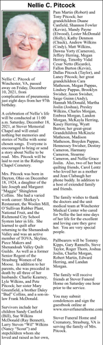 Nellie C Pitcock Obituaries Winchesterstar Com